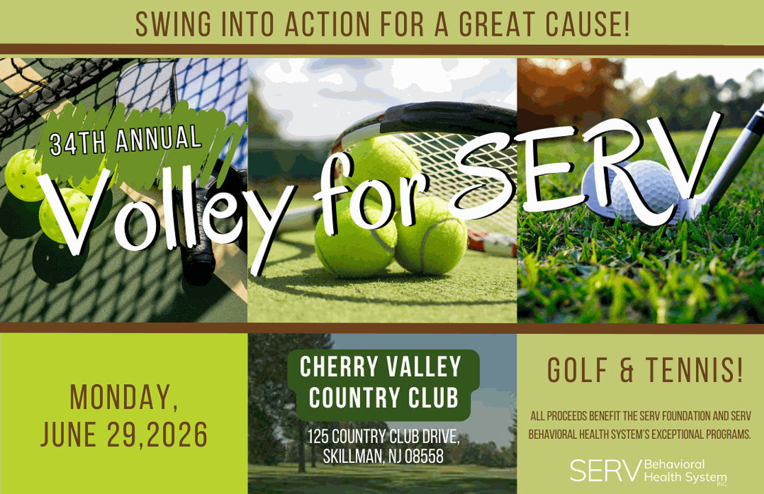 SERV Behavioral Health System, Inc., an award-winning, not-for-profit leader in behavioral healthcare, has been transforming lives in New Jersey for more than 50 years. We are excited to announce our highly anticipated 34th Annual Volley for SERV fundraiser, taking place Monday, June 29, at the Cherry Valley Country Club in Skillman, NJ. Every dollar raised will directly benefit SERV’s life-changing recovery services for over 3,000 children, youth, and adults facing chronic mental illness, addiction, and intellectual and developmental disabilities.